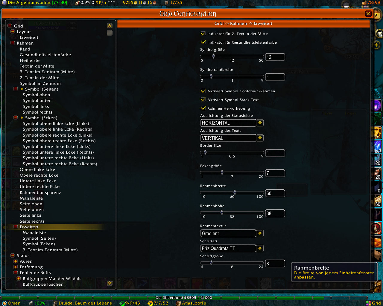 Folgende AddOns also bitte alle installieren und beim Druiden aktivieren:
